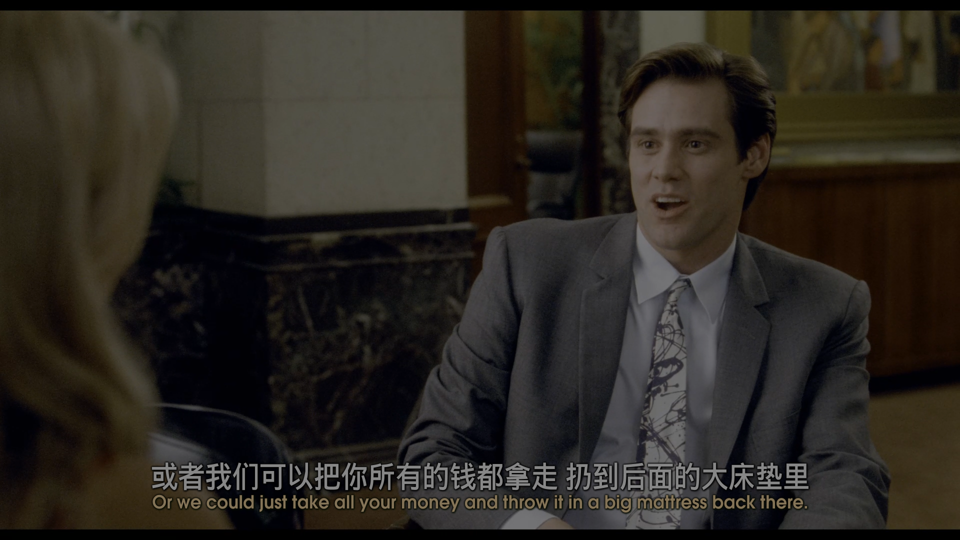 基于原盘后缀JUNGLiST制作, 双语鉴于网络上都存在缺失和翻译错误的情况下本人从原盘OCR出英字自译,特效本人制作过水。国配音轨有好友重调整 适配本适配,国配字幕由好友听写完成,以上感谢! ![]() ◎译 名 变相怪杰 / 面具 / 摩登大圣 / La máscara ◎片 名 The Mask ◎年 代 1994 ◎产 地 美国 ◎类 别 喜剧 / 奇幻 ◎语 言 英语 / 瑞典语 ◎上映日期 1994-07-29(美国) ◎IMDb评分 7.0/10 from 457,267 users ◎IMDb链接 https://www.imdb.com/title/tt0110475/ ◎豆瓣评分 8.1/10 from 292,865 users ◎豆瓣链接 https://movie.douban.com/subject/1297570/ ◎片 长 101分钟 ◎导 演 查克·拉塞尔 / Chuck Russell ◎演 员 金·凯瑞 / Jim Carrey (饰 Stanley Ipkiss/The Mask) 彼得·里格特 / Peter Riegert (饰 Lt. Mitch Kellaway) 彼得·格林 / Peter Greene (饰 Dorian) 卡梅隆·迪亚兹 / Cameron Diaz (饰 Tina Carlyle) 艾米·雅丝贝克 / Amy Yasbeck (饰 Peggy Brandt) 理查德·杰尼 / Richard Jeni (饰 Charlie Schumaker) Max Max (饰 Milo the Dog) Orestes Matacena Orestes Matacena (饰 Niko) 蒂姆·巴格来 / Tim Bagley (饰 Irv) 南茜·费什 / Nancy Fish (饰 Mrs. Peenman) 雷格·E·凯蒂 / Reg E. Cathey (饰 Freeze) 丹尼斯·弗雷斯特 / Denis Forest (饰 Sweet Eddy) 本·斯坦 / Ben Stein (饰 Dr. Arthur Neuman) 布莱克·克拉克 / Blake Clark (饰 Murray) 克里斯托弗·达尔加 / Christopher Darga (饰 Paramedic #3) 乔莉·费舍尔 / Joely Fisher (饰 Maggie) 凯文·格雷维奥斯 / Kevin Grevioux (饰 Henchman #7) Robert Keith Robert Keith (饰 Police Officer) 爱沃瑞·欧欣 / Ivory Ocean (饰 Mayor Tilton) Robert O'Reilly Robert O'Reilly (饰 The Figure) Eamonn Roche Eamonn Roche (饰 Mr. Dickey) Wendy L. Walsh Wendy L. Walsh (Wendy Walsh) 梅多·威廉姆斯 / Meadow Williams (饰 Pebbles) 加雷特·佐藤 / Garret Sato (饰 Dorian Tyrell's Henchman) 吉普·斯温森 / Jeep Swenson (饰 Masked Dorian) Peter Wick Peter Wick (饰 Passenger) 陆建艺 / Jianyi Lu 吴永庆 / Yongqing Wu 斯科特·麦克埃尔罗伊 / Scott McElroy (饰 Niko's Thug #1) ◎编 剧 马克·维西顿 / Mark Verheiden 麦克·韦柏 / Mike Werb ◎制 片 人 查克·拉塞尔 / Chuck Russell 迈克·理查森 / Mike Richardson 罗伯特·恩格尔曼 Robert Engelman 卡拉·弗莱 / Carla Fry ◎音 乐 兰迪·艾德尔曼 / Randy Edelman ◎摄 影 约翰·R·莱昂耐迪 / John R. Leonetti ◎剪 辑 阿瑟·科伯恩 / Arthur Coburn ◎选 角 Fern Champion Fern Champion 马克·帕拉迪尼 / Mark Paladini ◎美 术 兰迪·莫尔 / Randy Moore 克雷格·斯特恩斯 / Craig Stearns Ellen Totleben Ellen Totleben ◎服 装 Ha Nguyen Ha Nguyen ◎化 妆 格雷格·卡农 / Greg Cannom 基斯·范德兰 / Keith VanderLaan Nina Paskowitz Nina Paskowitz Roland Blancaflor Roland Blancaflor ◎副 导 演 Ty Arnold Ty Arnold ◎视觉特效 江道格 / Doug Chiang 肯·拉斯顿 / Ken Ralston 潘国瑜 / Ellen Poon Chad Taylor Chad Taylor 格雷格·巴特勒 / Greg Butler Jim Morris Jim Morris 罗伯特·韦弗 / Robert Weaver 史蒂夫·威廉姆斯 / Steve 'Spaz' Williams 小约翰·安德鲁·伯顿 / John Andrew Berton Jr. 吉尔·布鲁克斯 / Jill Brooks 汤姆·柏提诺 / Tom Bertino 吉姆·米切尔 / Jim Mitchell Blaine Kennison Blaine Kennison Robert Stadd Robert Stadd Danny Gordon Taylor Danny Gordon Taylor 斯科特·斯奎尔斯 / Scott Squires 罗布·科尔曼 / Rob Coleman Christian Kubsch Christian Kubsch 哈比布·扎尔加普尔 / Habib Zargarpour Carolyn Ensle Rendu Carolyn Ensle Rendu Benton Jew Benton Jew 乔恩·法尔海特 / Jon Farhat John Murrah John Murrah Craig Clark Craig Clark Corey Hels Corey Hels Mark Axton Mark Axton ◎简 介 银行小职员斯坦利(金•凯瑞 Jim Carrey 饰)老实本分,过着和所有老实人一样的平凡生活。一次,斯坦利在接待金发美女蒂娜(卡梅隆•迪亚茨 Cameron Diaz 饰)时深深恋上了对方,不料蒂娜却是黑帮头目多利安(彼得•格林纳 Peter Greene 饰)抢劫银行前派来打探地形的。多利安随后成功抢劫了斯坦利所在的银行。 一晚,斯坦利意外获得了一个奇怪的面具。戴上面具后的斯坦利变得力大无比、身手敏捷。斯坦利开始四出捉弄平日欺负他的人,并抢走了多利安劫得的巨款,与蒂娜在夜总会尽情飞舞。多利安知道了面具的威力后,用计夺走了面具,斯坦利则被关进了监狱。斯坦利最后能否凭自己的智慧夺回面具,与蒂娜有情人终成眷属? ◎获奖情况 第67届奥斯卡金像奖 (1995) 最佳视觉效果(提名) 斯科特·斯奎尔斯,史蒂夫·威廉姆斯,汤姆·柏提诺,乔恩·法尔海特 第52届金球奖 (1995) 电影类 音乐/喜剧片最佳男主角(提名) 金·凯瑞 第48届英国电影学院奖 (1995) 电影奖 最佳化妆/发型(提名) 谢里尔·普塔克,格雷格·卡农 电影奖 最佳艺术指导(提名) 克雷格·斯特恩斯 电影奖 最佳特殊视觉效果(提名) 史蒂夫·威廉姆斯,汤姆·柏提诺,斯科特·斯奎尔斯,乔恩·法尔海特